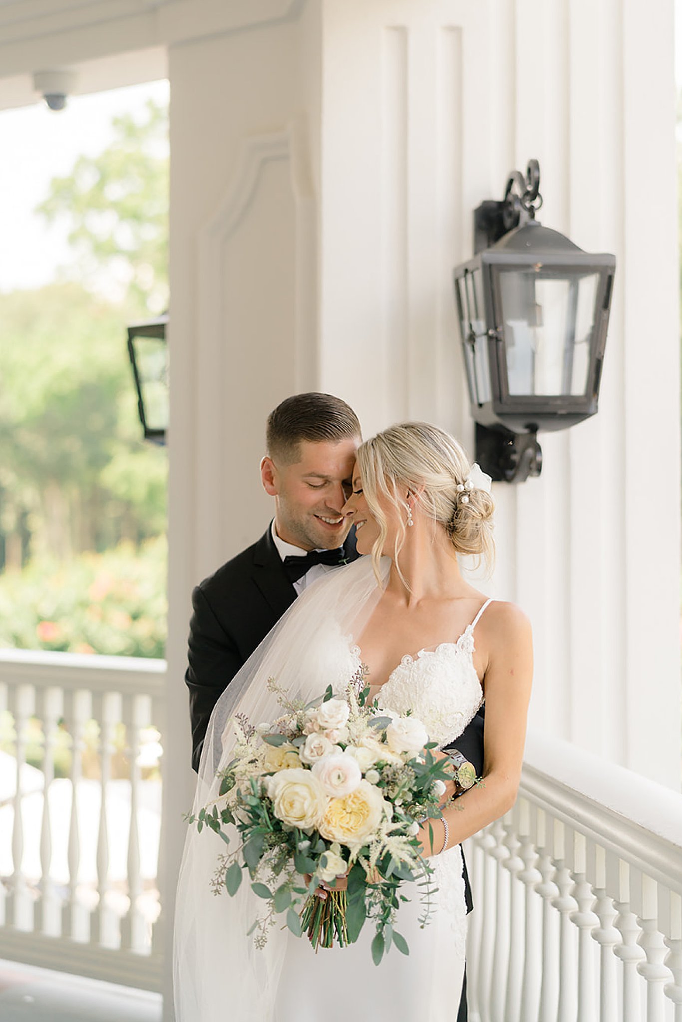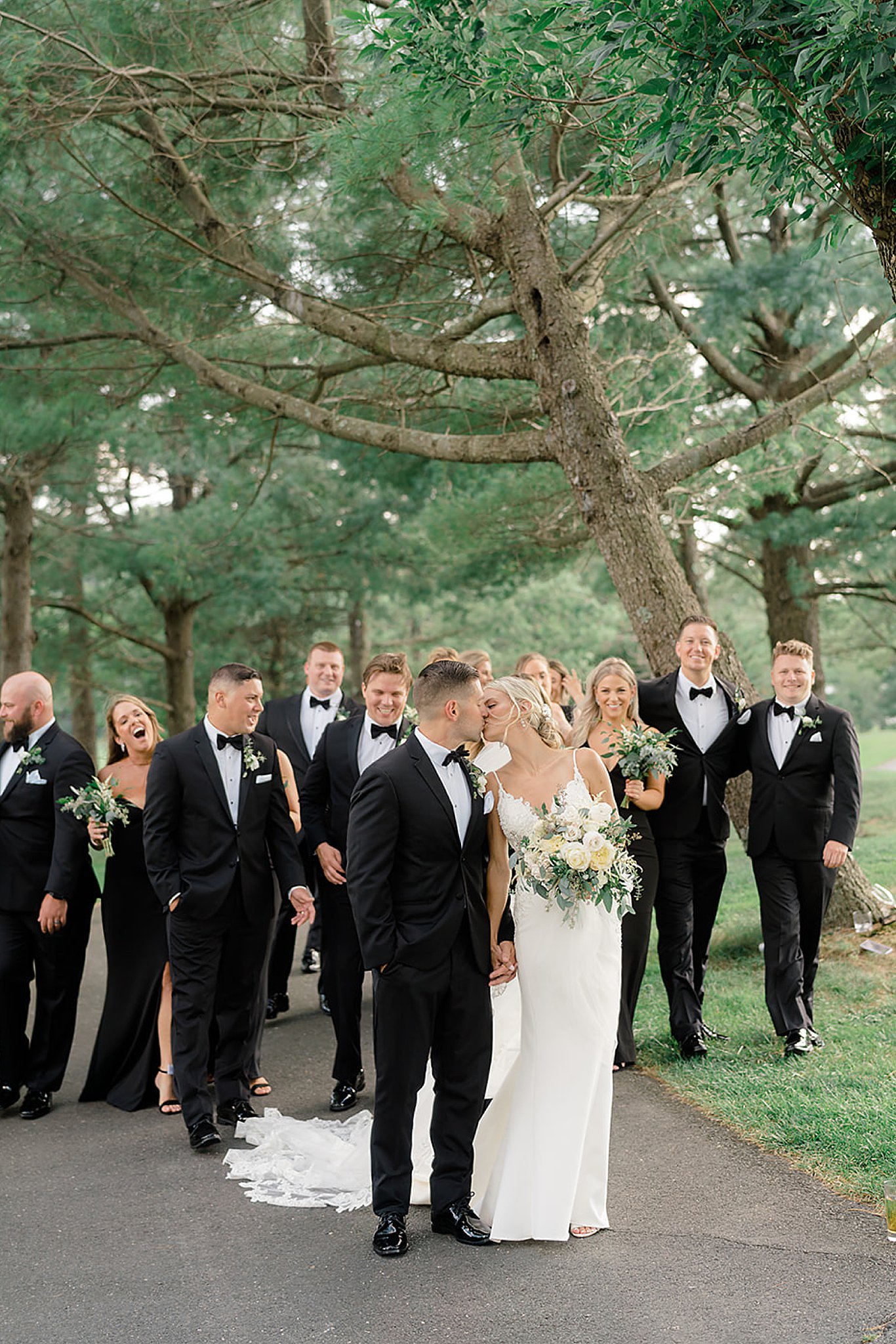 We’re so excited to share Kimberly & Bobby’s Eagle Oaks Country Club Wedding. Kimberly got ready for the day in the gorgeous bridal suite at the country club. The couple shared their first look on the wrap-around porch and made their way to the golf course for bridal party portraits. The greenery surrounding them was so vibrant and made for such gorgeous photos. We are obsessed with the elegance of a black & white color scheme for the bridal party!