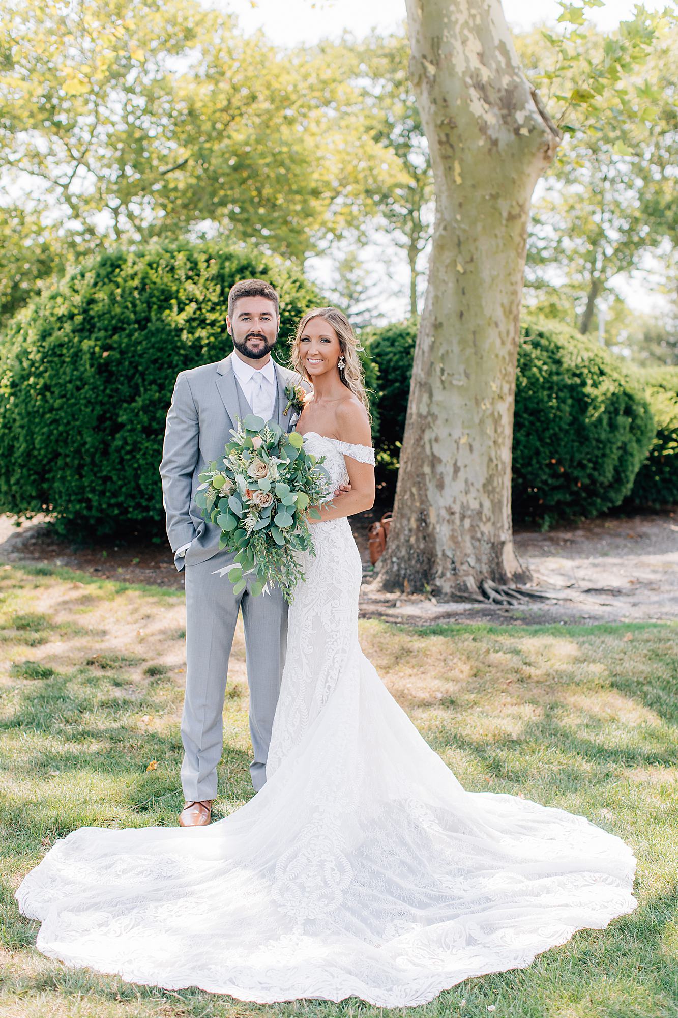 Lindsey and Robert wed at Linwood Country Club and it was a beautiful, golden summer day! Linwood Country Club recently renovated their beautiful wedding venue, and it’s a perfect, clean, modern palette for stylish South Jersey brides. Lindsey and Robert’s romantic and elegant style perfectly accentuated the South Jersey wedding venue’s modern vibe. Everything from the abundant eucalyptus to the golden glow during portraits sings fresh, clean and vibrant summer wedding. We’re loving this palette, this venue and this gorgeous couple’s portraits! Our team, Megan and Liz, photographed the day perfectly. Check it out below!