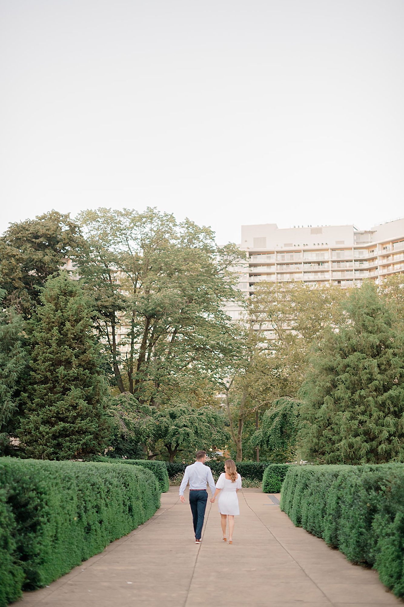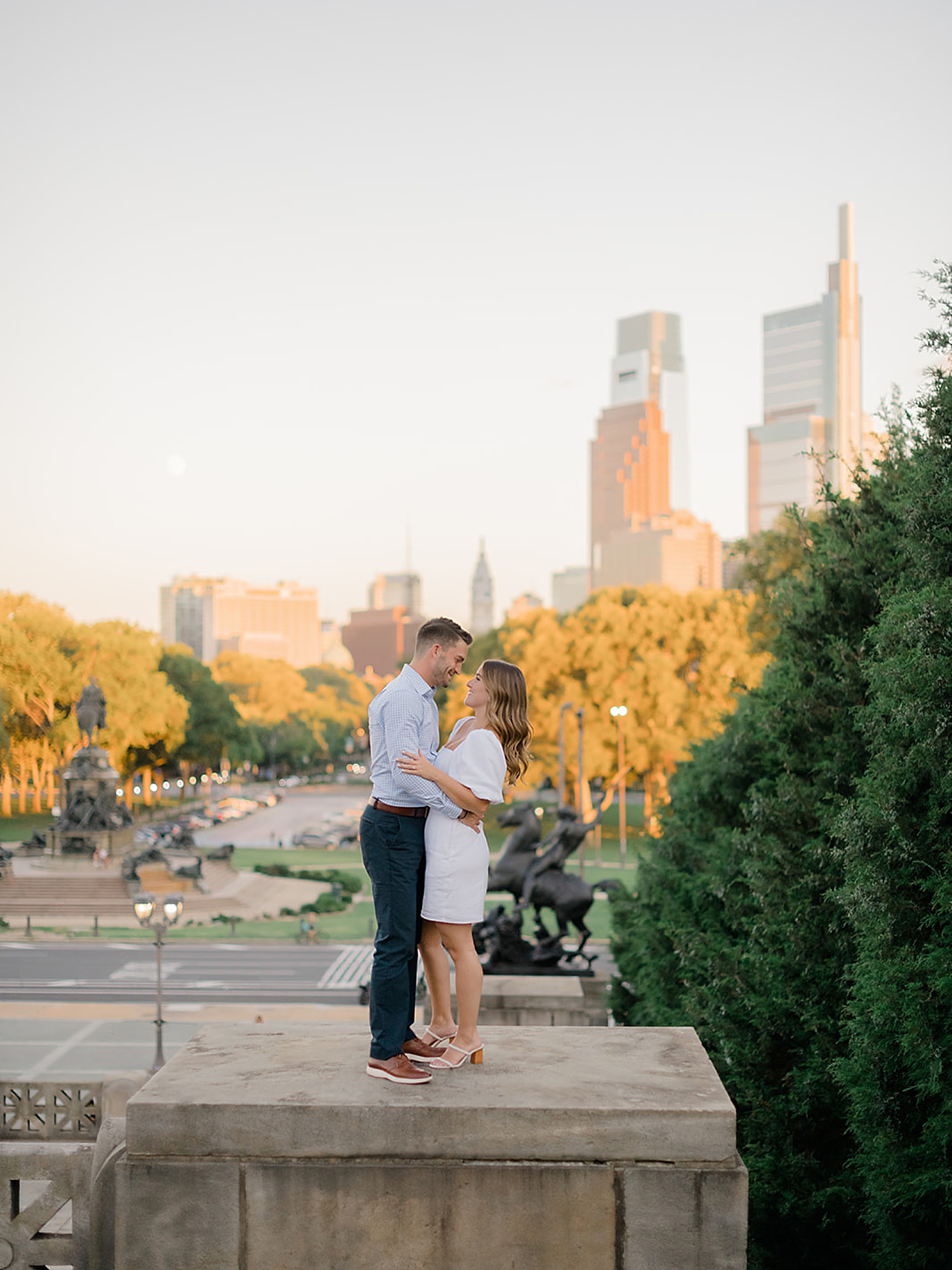 Alexis & Matt’s Philadelphia engagement session was so romantic! The area surrounding the PMA is gorgeous and at golden hour, it is filled with dreamy golden light. This summer evening was no exception. We started along the trails behind the museum and made our way to the famous steps. The skyline views are epic! Scroll through the photos to see what we mean.